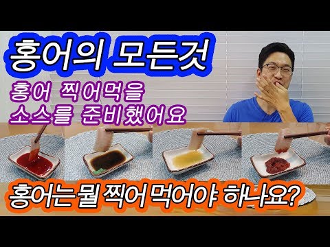 홍오찍어먹을 기본소스 - 초장 와사비간장 기름소금 쌈장 을 준비했습니다.